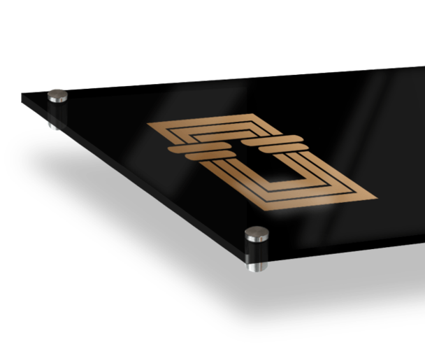 Þegar þú hannar plexi skilti, getur þú valið um það hvort merkingin sé límd framan á plötuna eða aftan á hana.